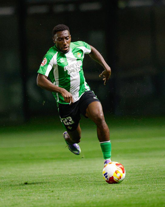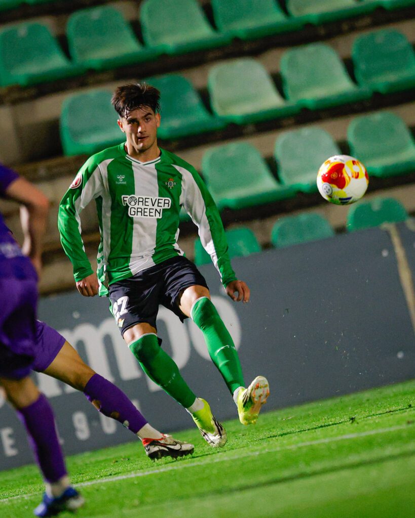 El duelo comenzó con ambos conjuntos activos. El Betis Deportivo tuvo la primera tras un mano a mano de Rodrigo Marina y, posteriormente un gran cabezazo de Embalo. Al cuarto de hora, el atacante aprovechó un pase desde el segundo palo tras un gran centro de Bladi. El extremeño disparó con cautela e hizo el 1-0 en la Ciudad Deportiva Luis del Sol.