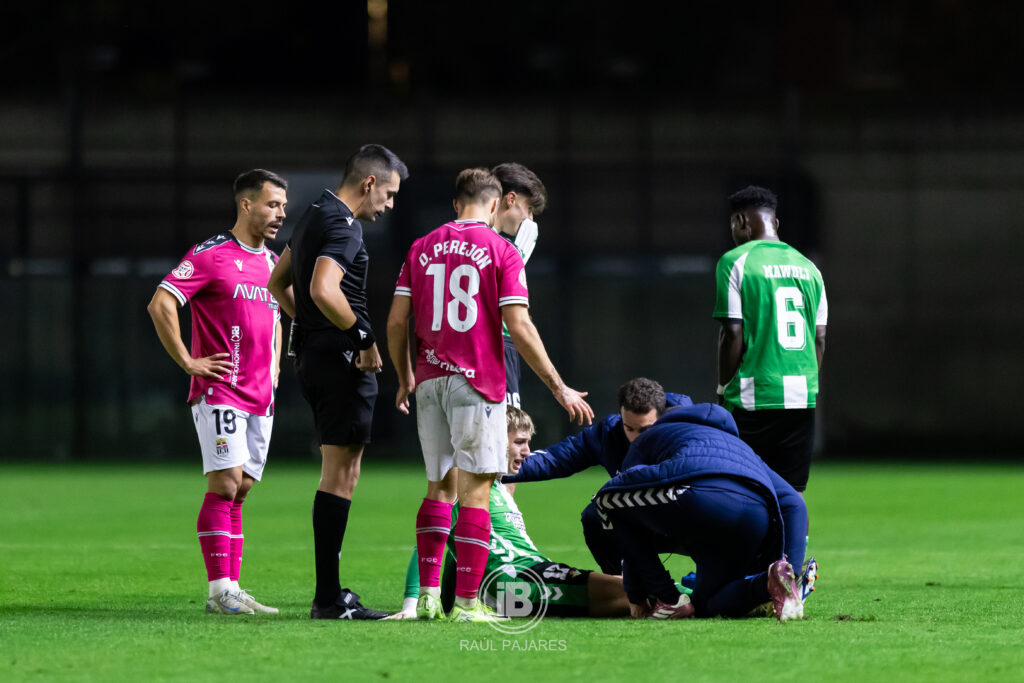 Los verdiblancos seguirían atacando, de la mano de Destiny desde lejísimos, pero llegaría una noticia terrible para los heliopolitanos con la lesión de Antonio Toral, en la que el murciano se retorció de dolor tras una acción ofensiva en el minuto 9, que provocó su substitución por Iker Amores.