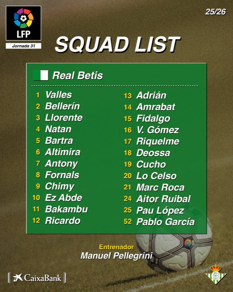 Pero sin duda, la gran noticia llega en forma de regreso. Giovani Lo Celso vuelve a una convocatoria tras varios meses alejado de los terrenos de juego. El argentino ha logrado recuperarse a tiempo y entra en la lista de 24 jugadores que se medirán a CA Osasuna, un refuerzo de enorme valor para el tramo final de temporada.